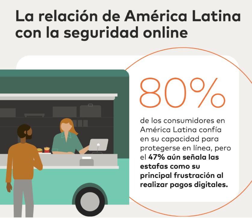 Según la encuesta, ocho de cada diez latinoamericanos (80%) dicen sentirse capaces de protegerse en línea —un claro indicador de la creciente madurez digital en la región. Sin embargo, casi la mitad (47%) identifica el fraude y las estafas como su principal frustración al realizar transacciones digitales, lo que resalta una tensión crítica entre confianza y cautela en una era de creciente inclusión financiera.