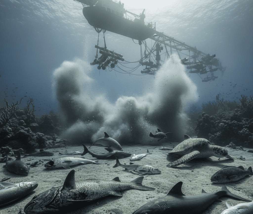 El escrito presentado ante el Poder Judicial sostiene que las detonaciones acústicas generadas por los cañones de aire comprimido alcanzan niveles de presión sonora que oscilan entre 250 y 300 decibeles. Según consta en la documentación aportada por la institución, el área de propagación del ruido submarino puede extenderse por más de 300.000 kilómetros cuadrados. Los sensores acoplados a los buques de exploración captan el retorno de las ondas para la elaboración de perfiles estratigráficos.