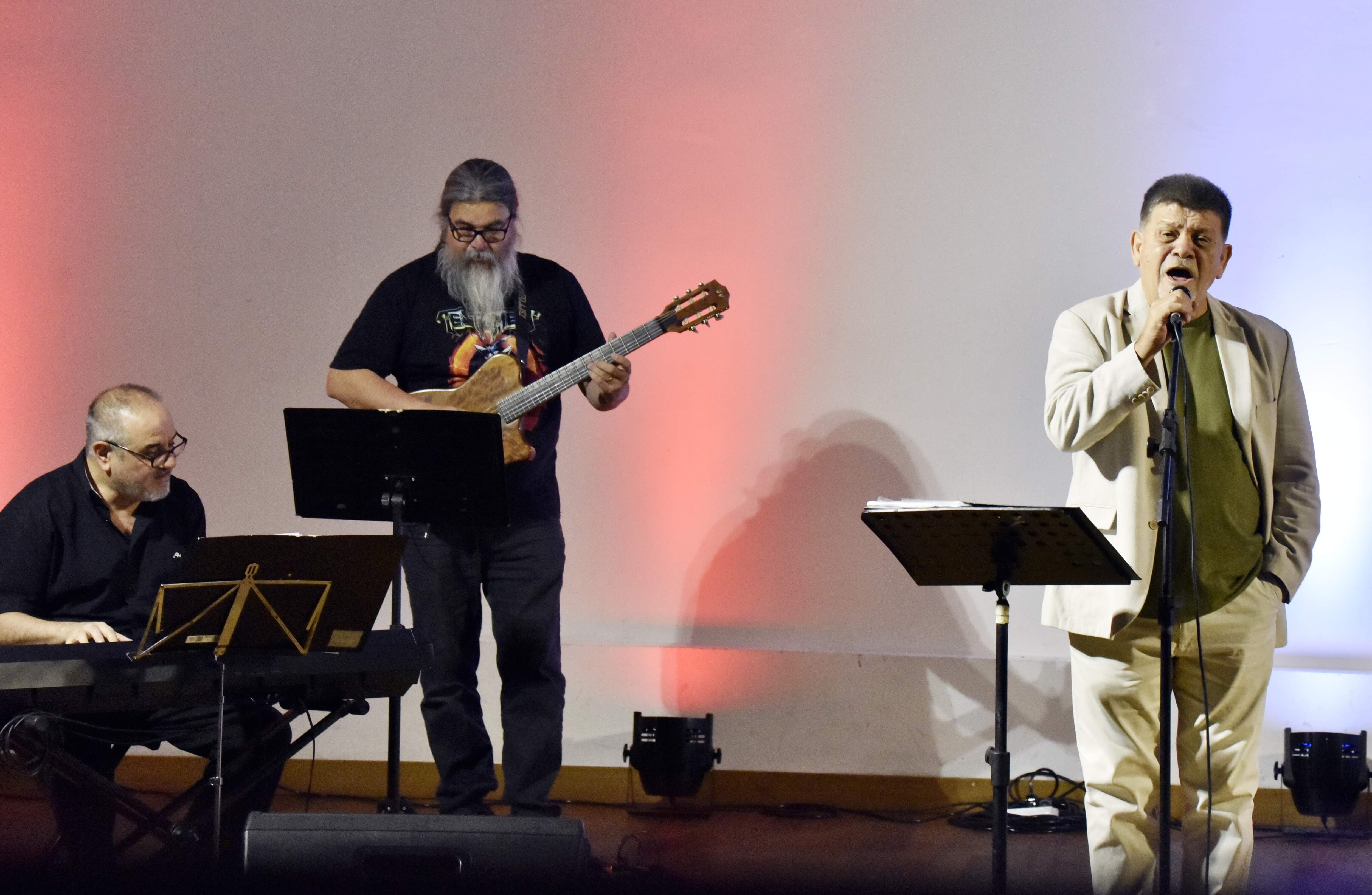Flecha agradeció y fue breve, porque la contundencia llegaría con su canto. El concierto comenzó con “Despertar”, junto a Fadlala al piano y Gabriel Colmán en guitarra. Desde los primeros versos el público acompañó con aplausos en medio de la interpretación. Flecha, visiblemente emocionado, dijo que se trataba de la canción más emblemática que interpretaba con Juglares, uno de los grupos que integró. Su voz, serena y a la vez intensa, parecía poner cuerpo a todo lo que minutos antes se había dicho sobre ella.