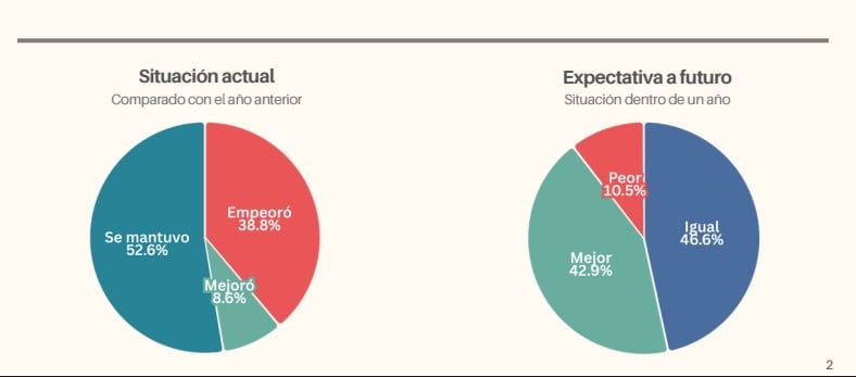 En cuanto a las expectativas, los comerciantes mostraron una mirada algo más equilibrada hacia el futuro. El 46,6% estimó que su situación dentro de un año será similar a la actual, mientras que el 42,9% anticipó una mejora y el 10,5% proyectó un deterioro.