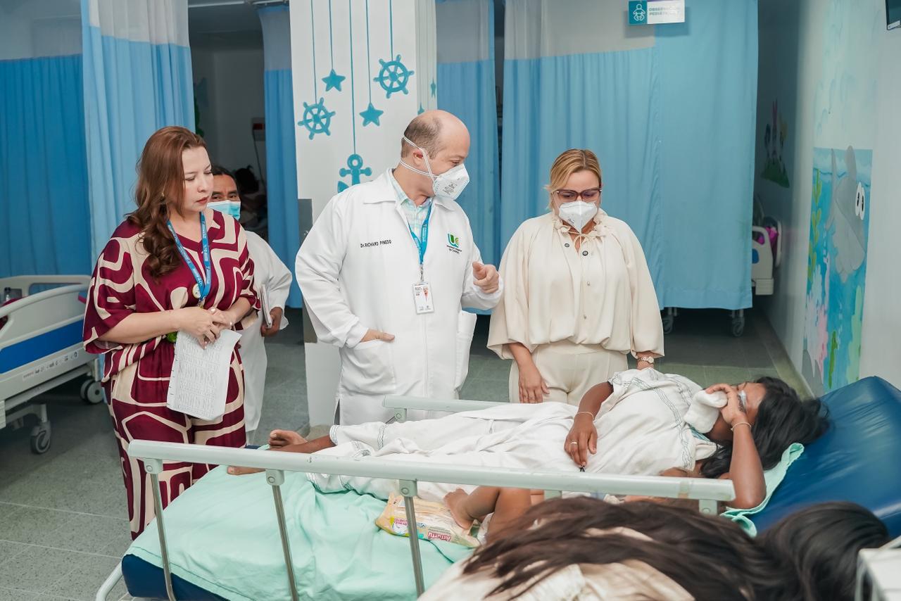 Durante su visita, la mandataria departamental sostuvo un encuentro con médicos y directivos de la institución para conocer el estado de salud de los pacientes y reiterar el compromiso del Gobierno del Magdalena con la protección de la vida y la atención integral de las comunidades más vulnerables.