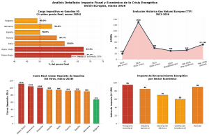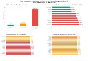 Los datos empleados datan de la segunda quincena de marzo de 2026 mostrando, como el conflicto en Oriente Medio golpeó directamente a los mercados energéticos europeos.