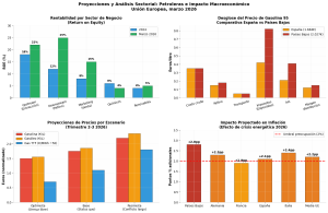 La crisis energética, pues, causó un beneficio sorprendente a las petroleras europeas dedicadas al refino. Los «crack spreads», o sea, la diferencia crudo-refinado, han subido, alcanzando niveles de récord en 2026.