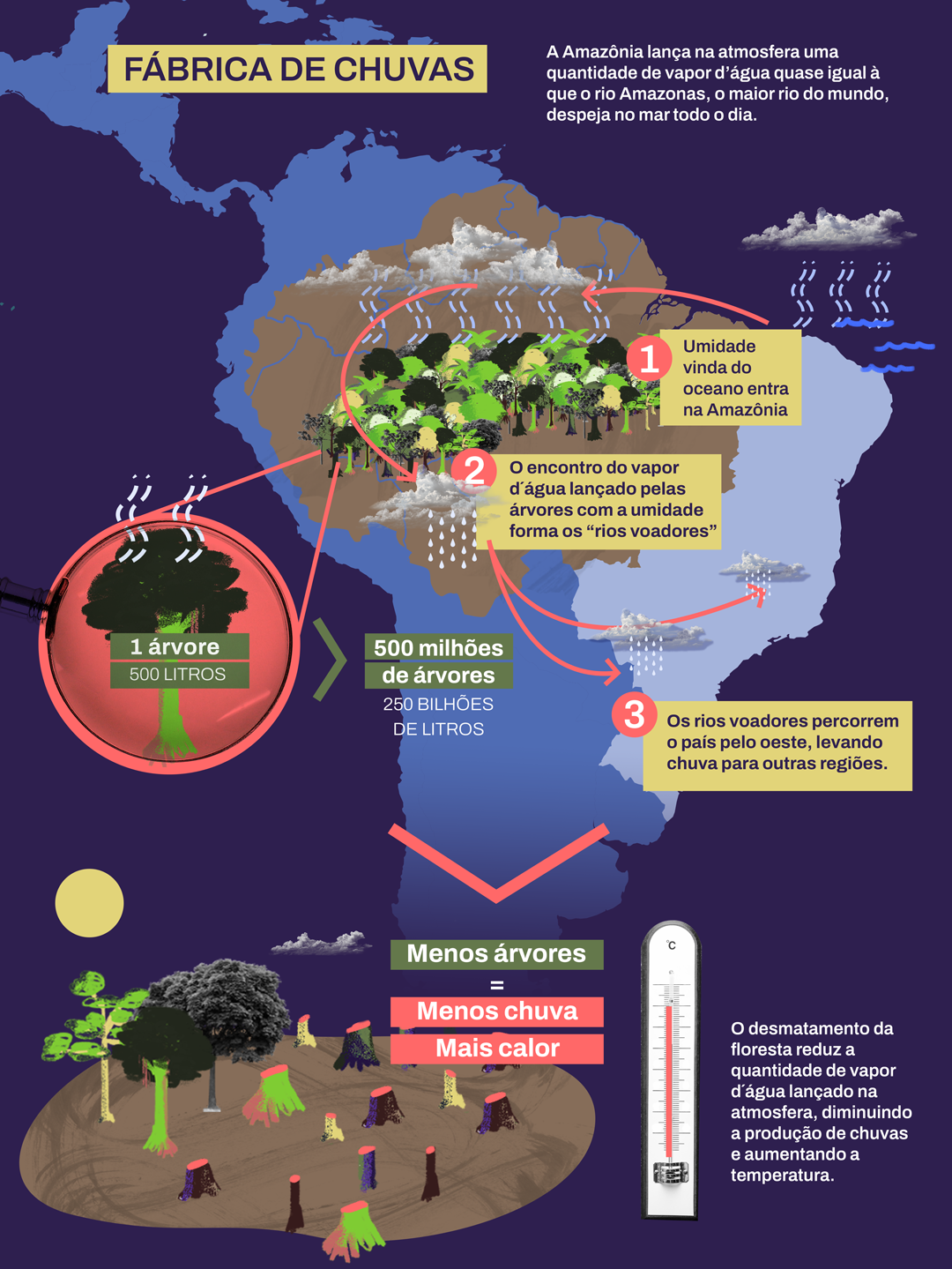 A Amazônia, como a maior floresta tropical do mundo, é como um coração para o planeta: bombeia vapor d’água por todo o continente, irrigando lavouras, regulando temperaturas e sustentando economias dentro e fora da região amazônica. E se esse coração desacelerar, todo o sistema pode colapsar.