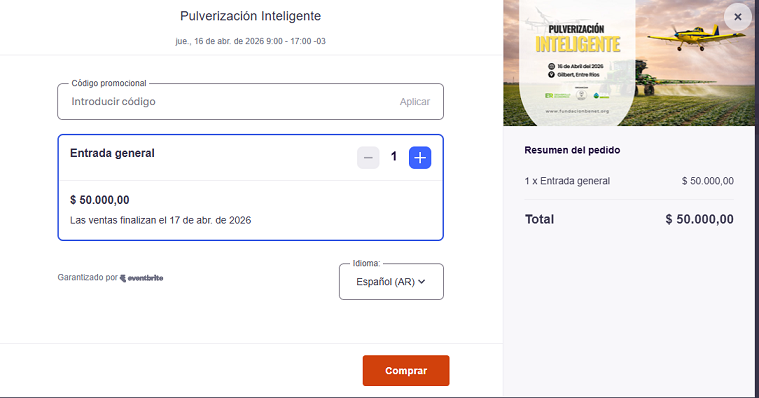 “Se trata de una actividad gratuita con cupos limitados”, se indicó en el parte gubernamental que dio a conocer la actividad. Para inscribirse, se comparte un link, el https://www.eventbrite.com.ar/e/pulverizacion-inteligente-tickets-1985284742106, donde un enlace lleva a obtener un ticket que es pago.